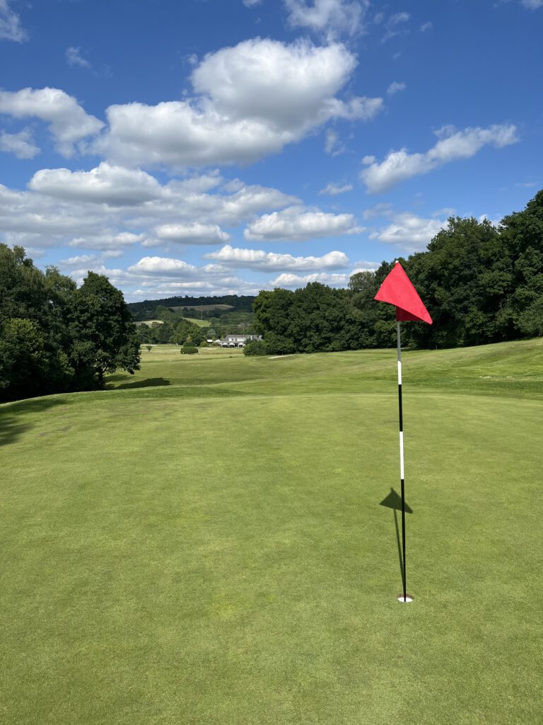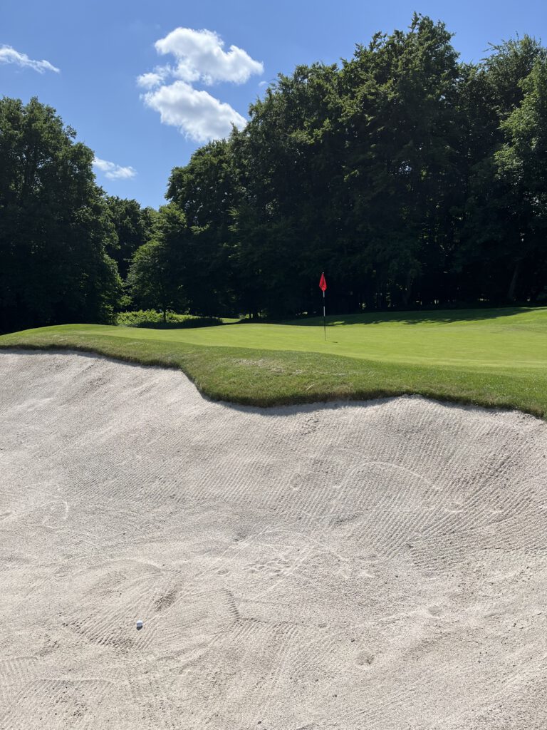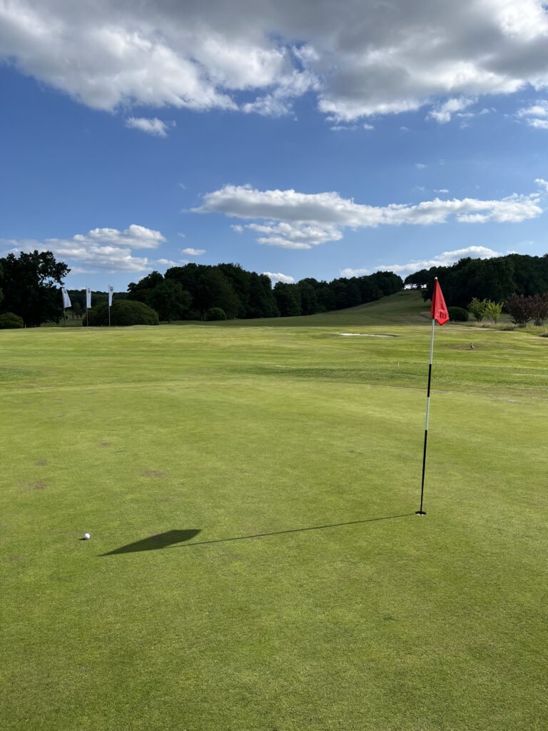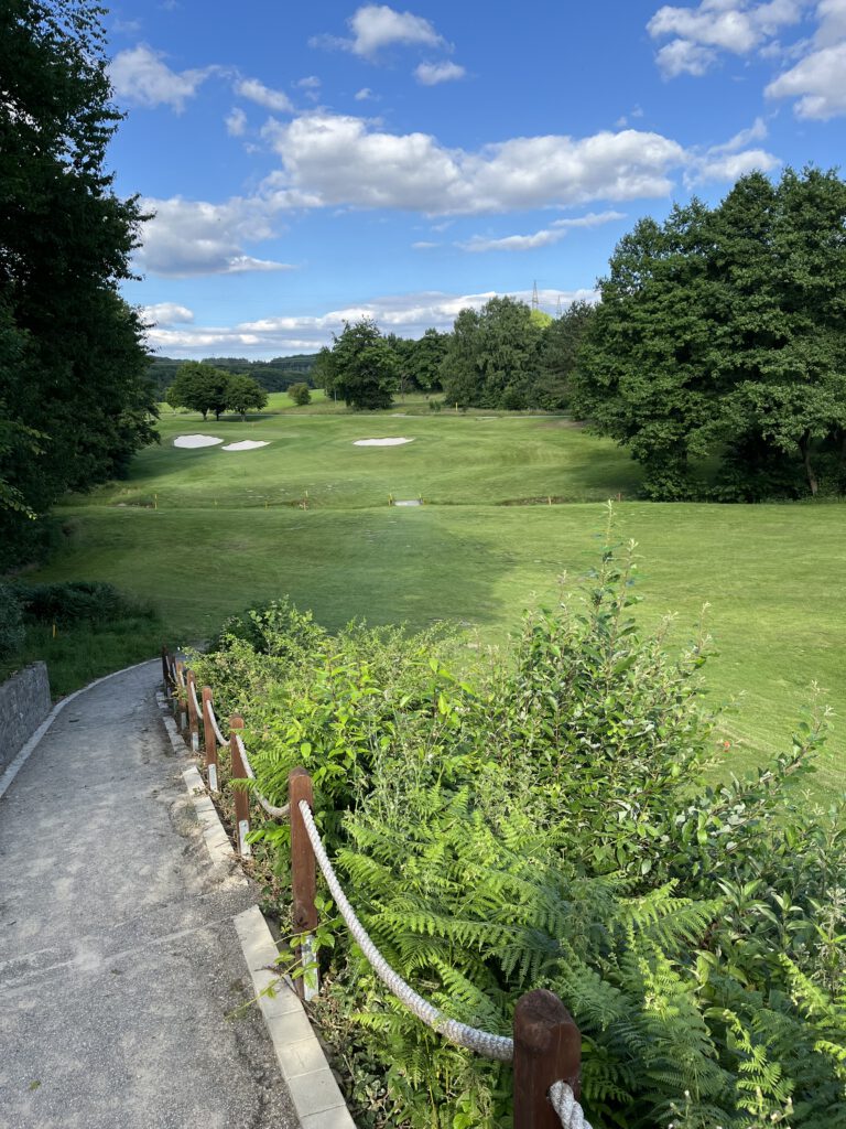 Die äußeren Rahmenbedingungen für meine Runde waren perfekt, um die 25 Grad und Sonnenschein. Der Platz war gut besucht, aber nicht zu voll. Eine Abschlagzeit musste ich im Vorfeld nicht buchen. Gefreut habe ich mich darüber, dass mir der GC Bergisch Land als Partnerclub meines Heimatvereins GC Schloss Georghausen ein reduziertes Fee in Höhe von 50 Euro angeboten hat.